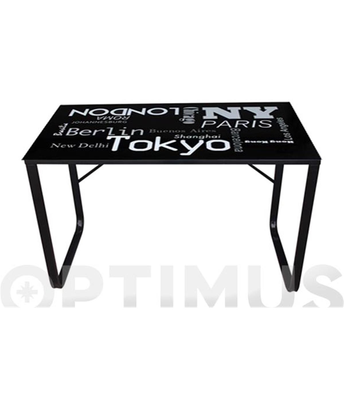 MESA ACERO CRISTAL LITOGRAFIADO CITIES 120 X 60 CM